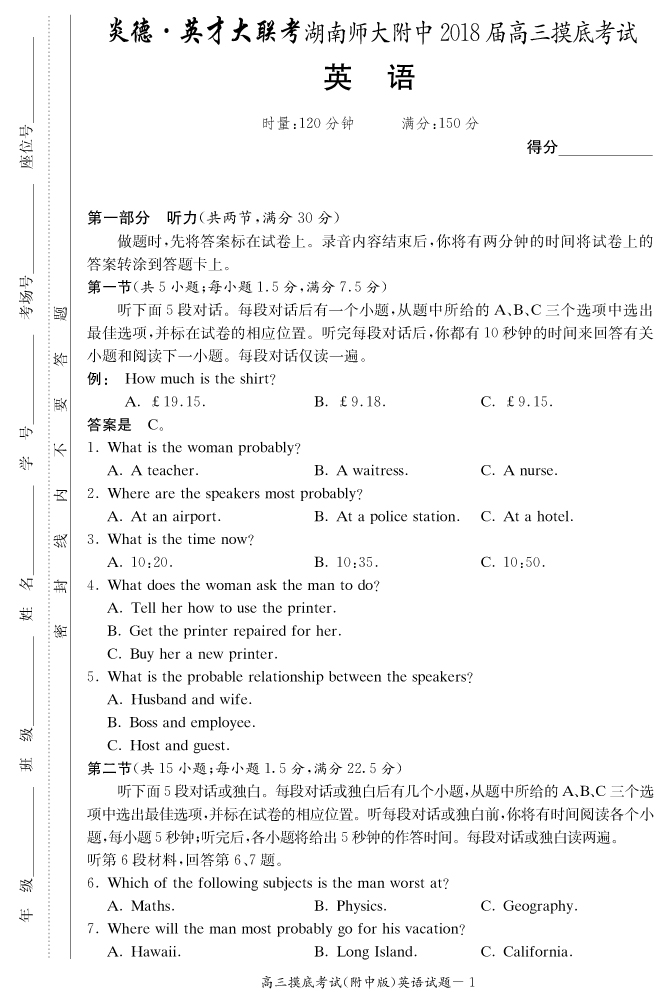 下一篇:【語文】炎德英才大聯考2018師大附中高三入學摸底考試