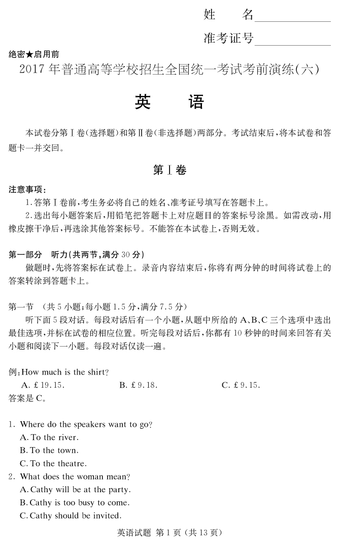 下一篇:【語文】2017年普通高等學校招生全國統一考試考前演練(六)