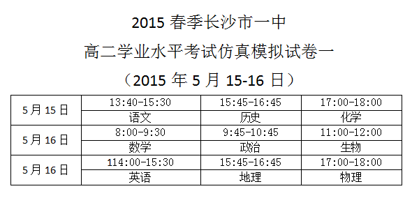 下一篇:2015春季長沙市一中高二學業水平考試仿真模擬試卷二考試時間安排(2015年5月31日-6月2日)