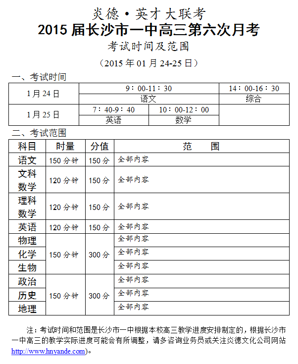 下一篇:炎德英才大聯考長沙市一中2015屆高三第7次月考考試時間和范圍(2015.02.26-27)