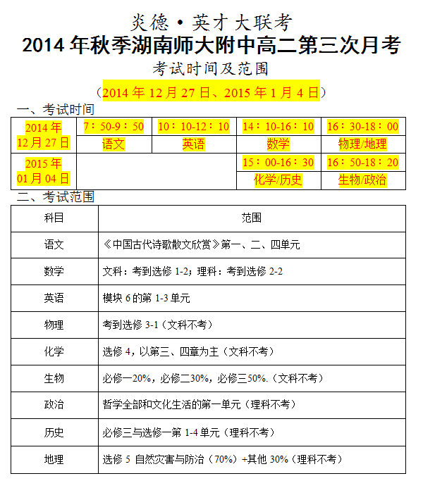 來源:炎德文化點擊:2014-12-03 09:26:20收藏本文當前位置:考試范圍 師大附中 高二 正文