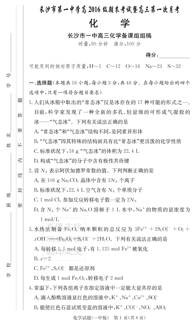 2026名師導學·高考總復習·小題量基礎周周考·化學