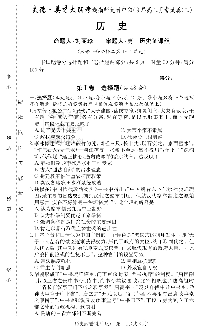 2026年高中寒假作業自主學習作業本·高三年級·歷史
