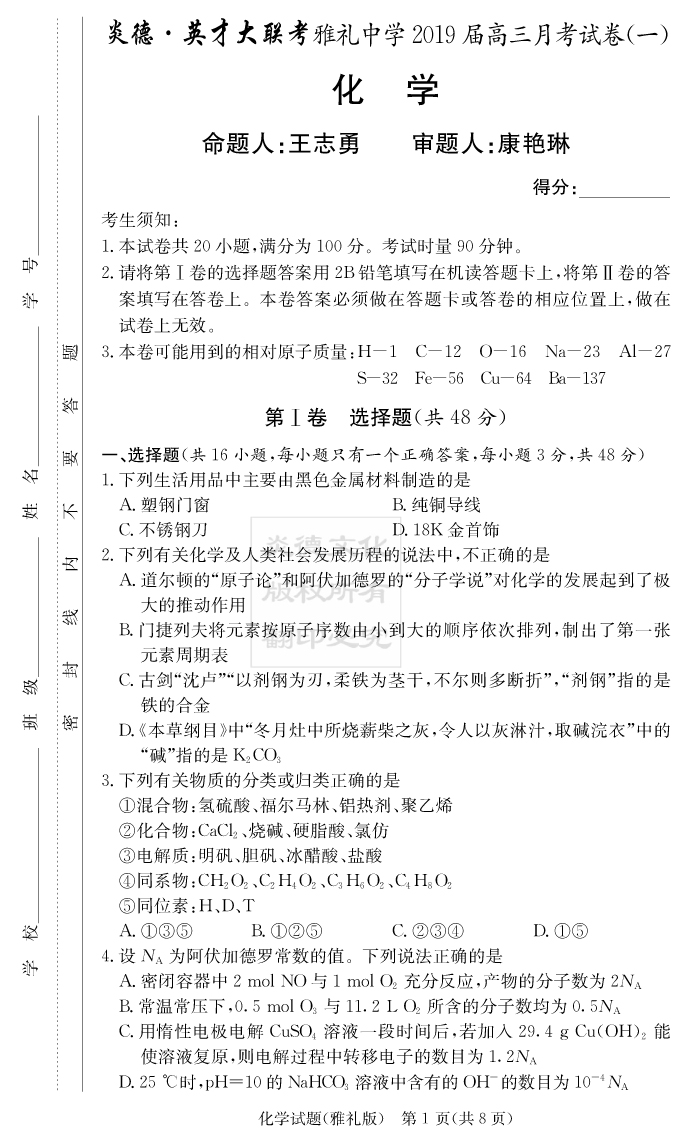 2026名師導學·高考總復習·小題量基礎周周考·化學
