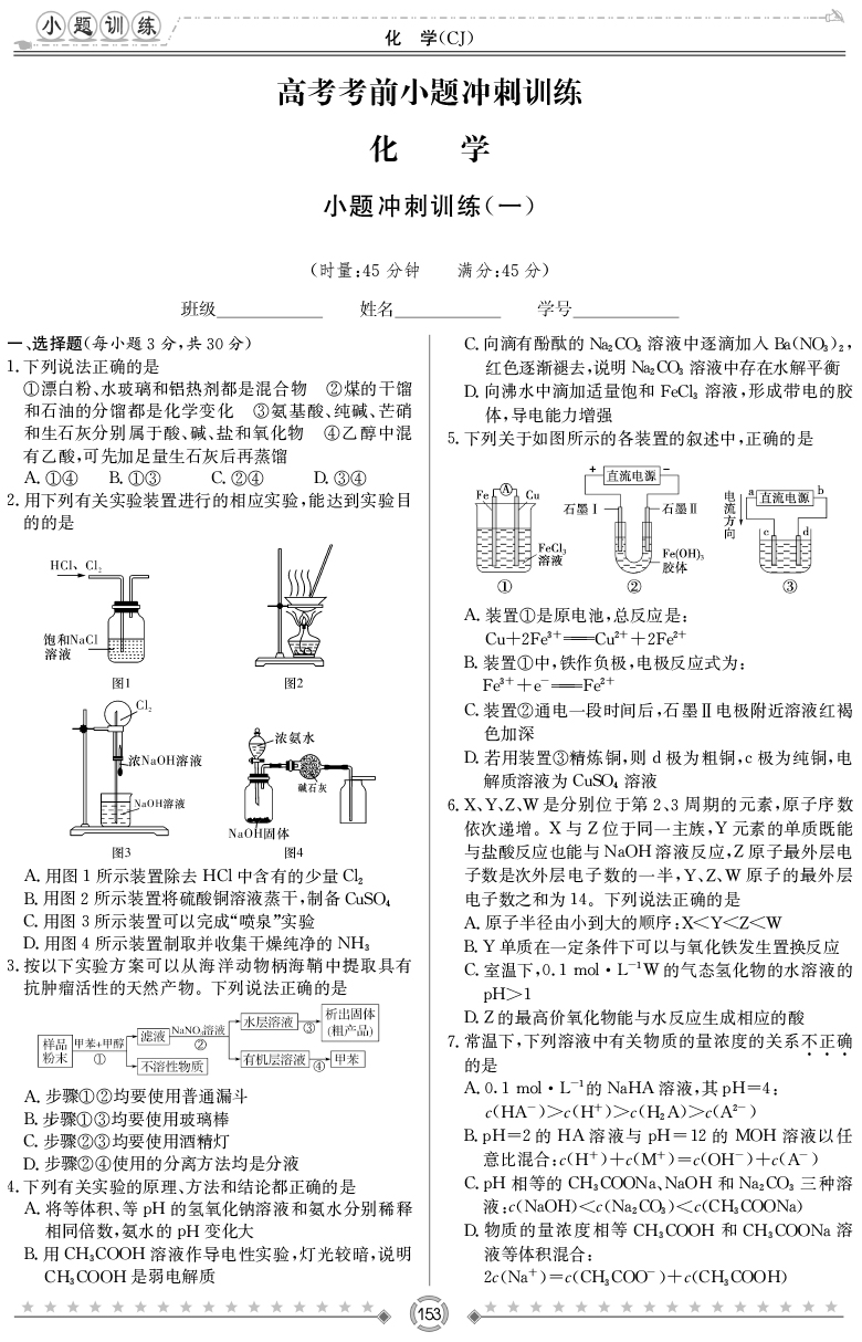 2026名師導學·高考總復習·小題量基礎周周考·化學