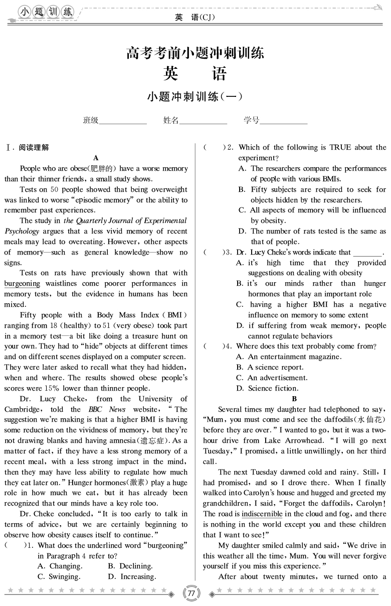2026名師導學·高考總復習·小題量基礎周周考·英語
