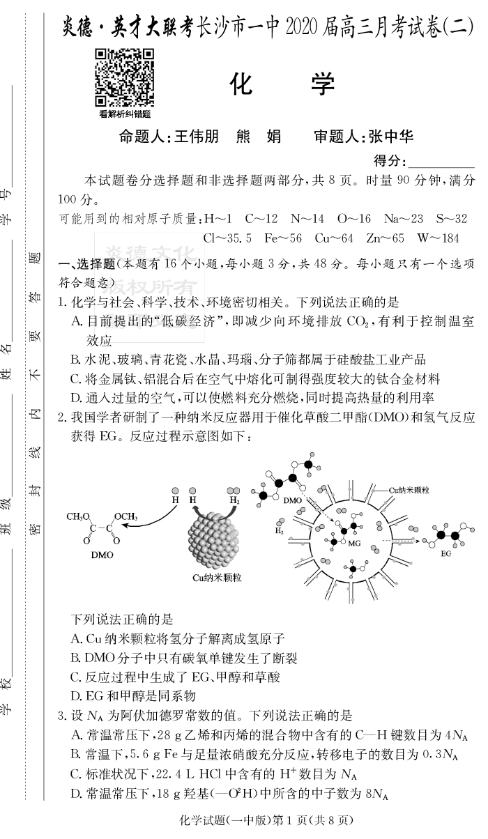 2026名師導學·高考總復習·小題量基礎周周考·化學