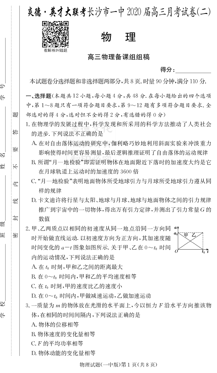2026高考總復習單元同步滾動測試卷·物理