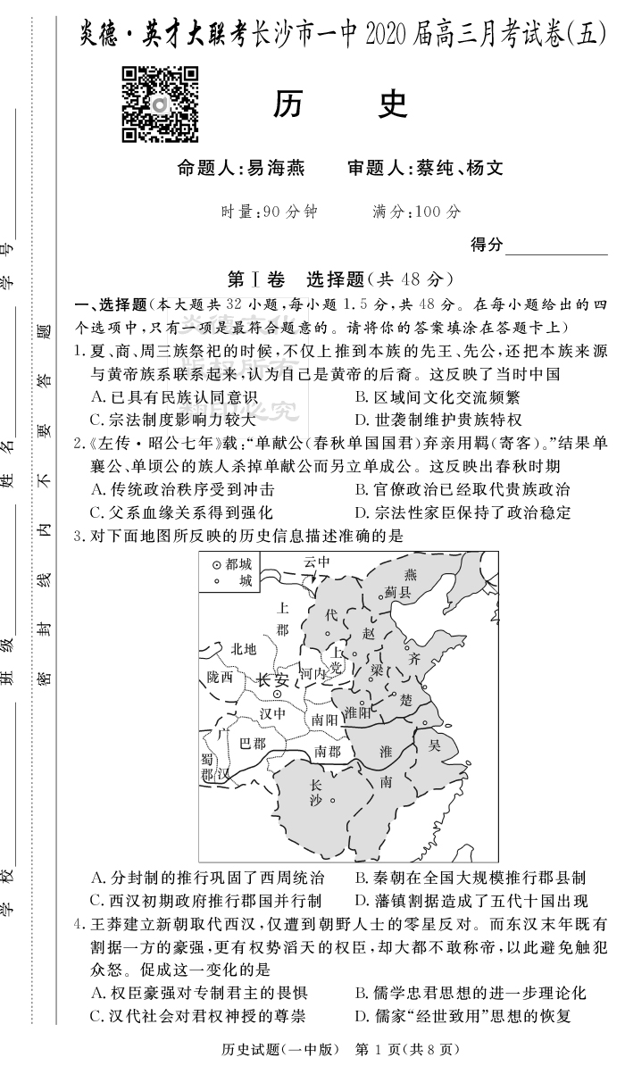 2026年高中寒假作業自主學習作業本·高三年級·歷史