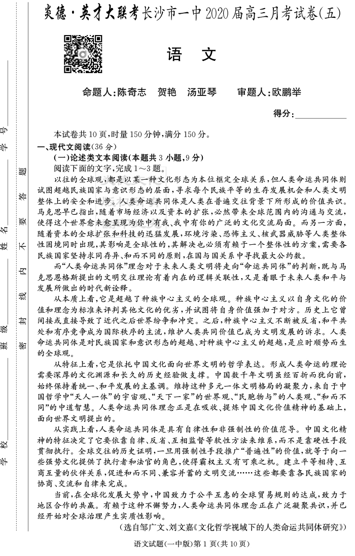 2026湖南師大附中新高考考前小題訓練·語文