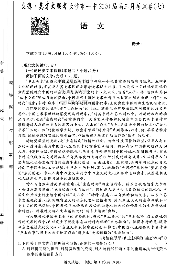 上一篇:【英語】炎德英才大聯考2020屆長沙市一中高三7次月考