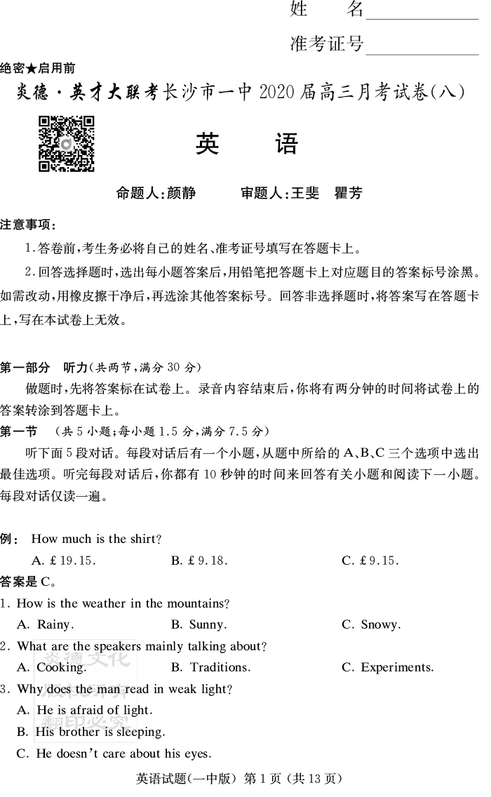 | 資源類別: | 名校月考 | |
