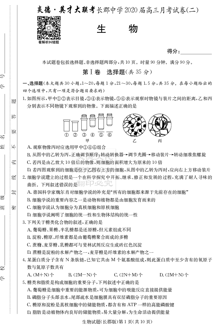 2026湖南師大附中新高考考前小題訓練·生物