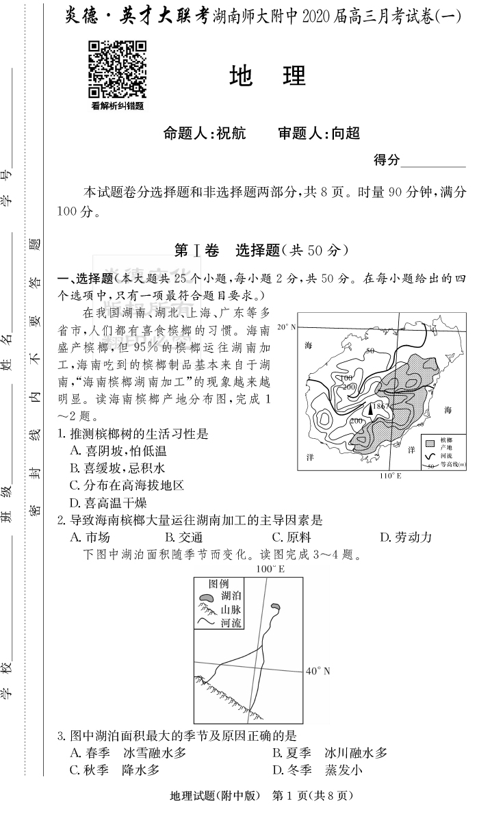 2026年高中寒假作業自主學習作業本·高三年級·地理