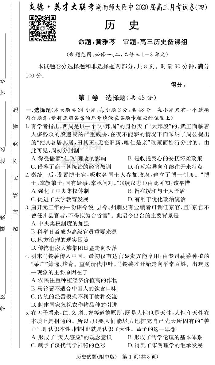 | 資源類別: | 名校月考 | |