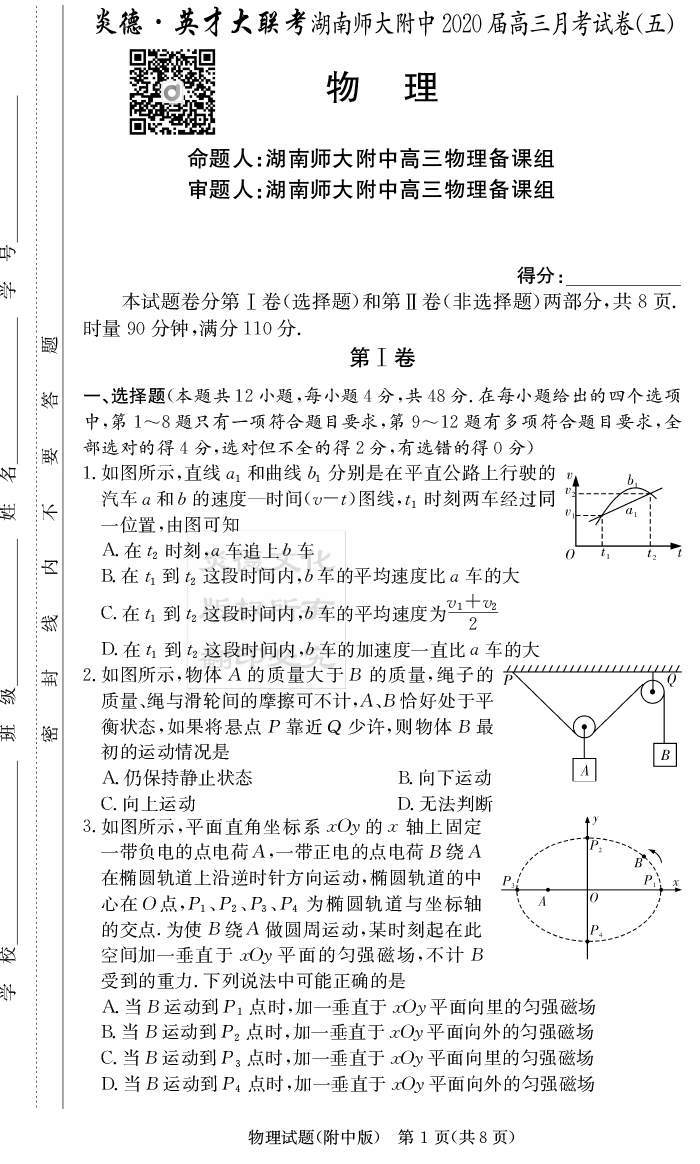 2026湖南師大附中新高考考前小題訓練·物理