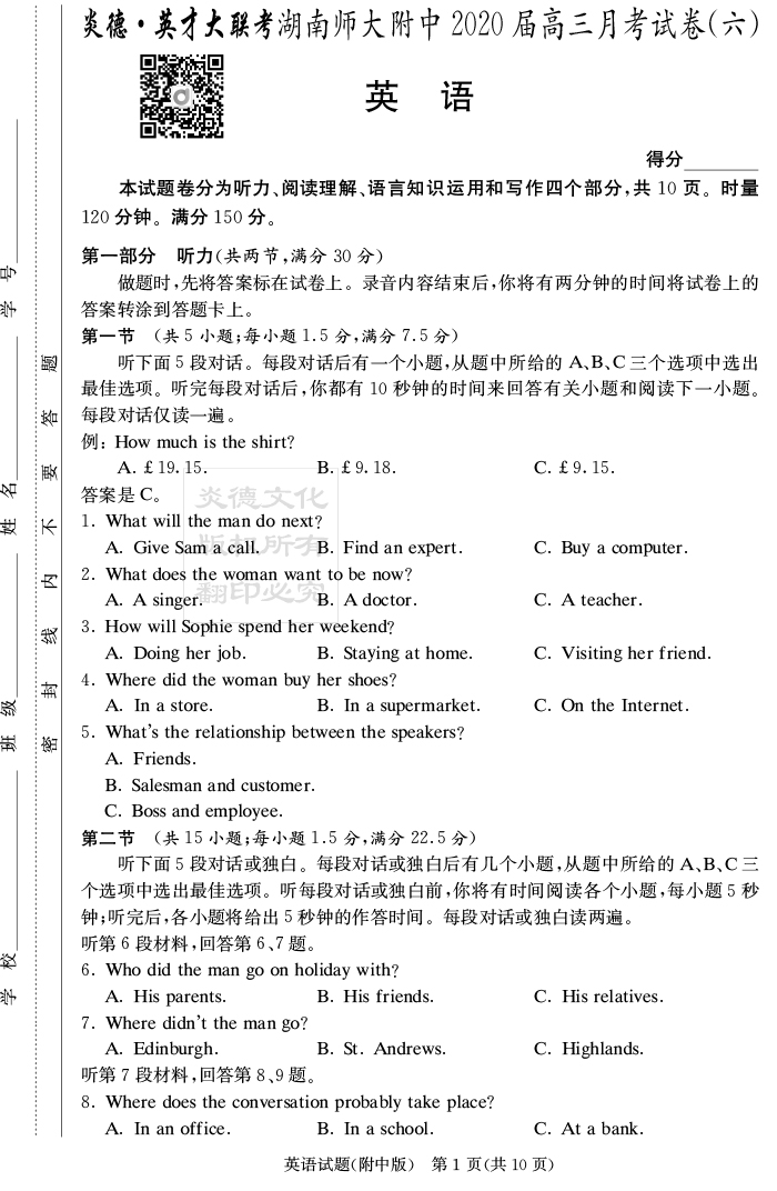 下一篇:【語文】炎德英才大聯考2020屆師大附中高三6次月考