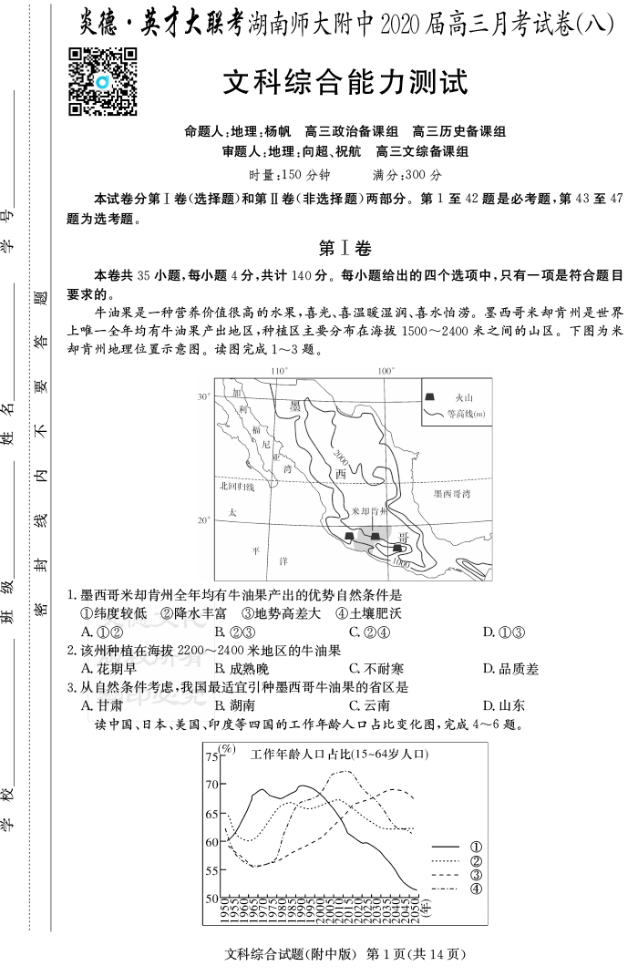 2026湖南師大附中新高考考前小題訓練·地理