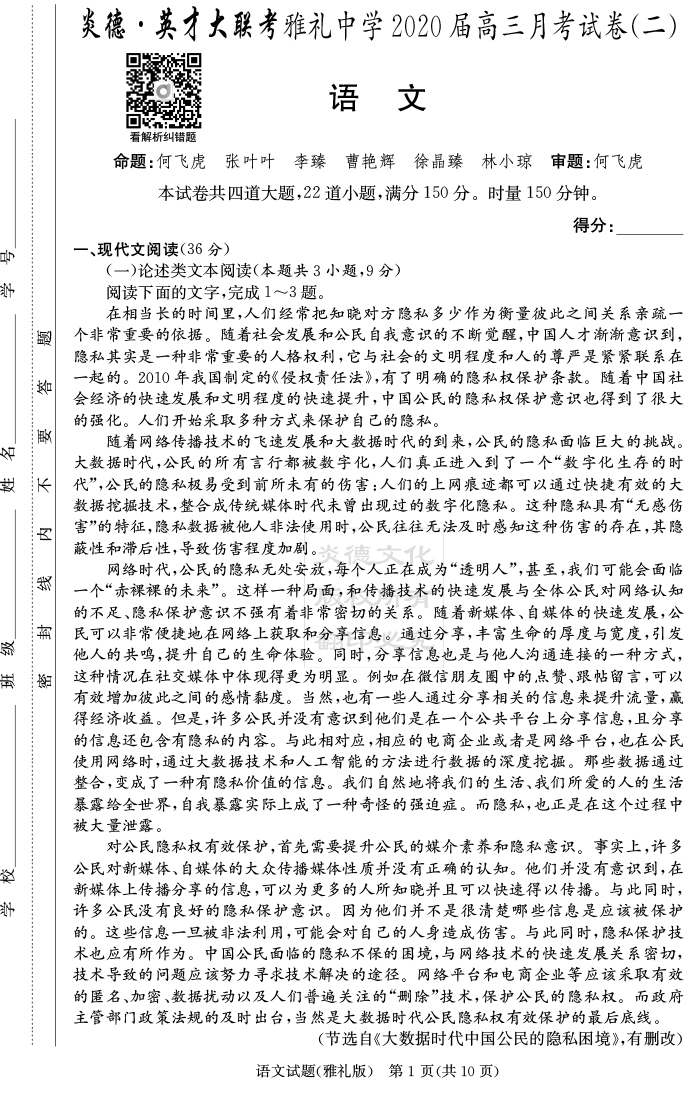 下一篇:【政治】炎德英才大聯考2020屆雅禮中學高三2次月考