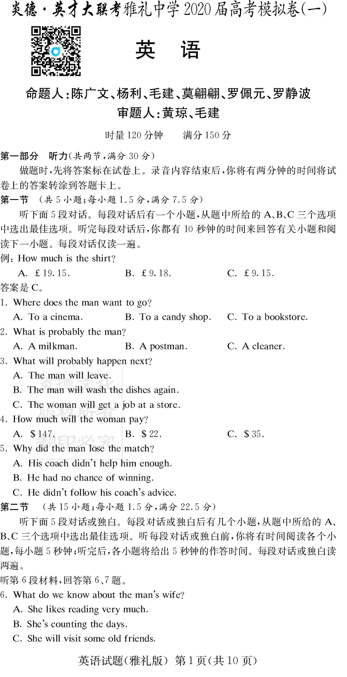 下一篇:【語文】炎德英才大聯考2020屆雅禮中學高三10次月考(模擬一)