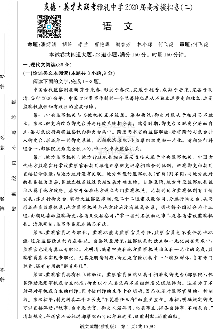 2026湖南師大附中新高考考前小題訓練·語文