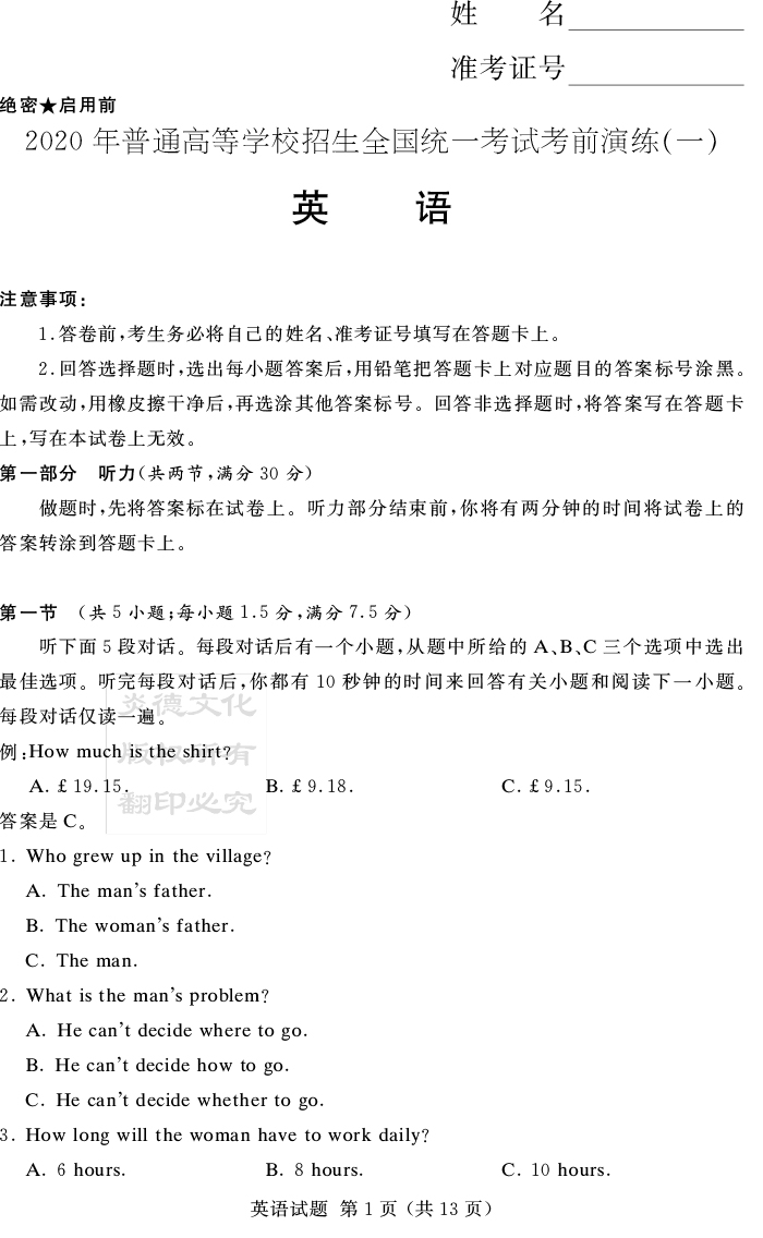 下一篇:【語文】2020年普通高等學校招生全國統(tǒng)一考試考前演練(一)