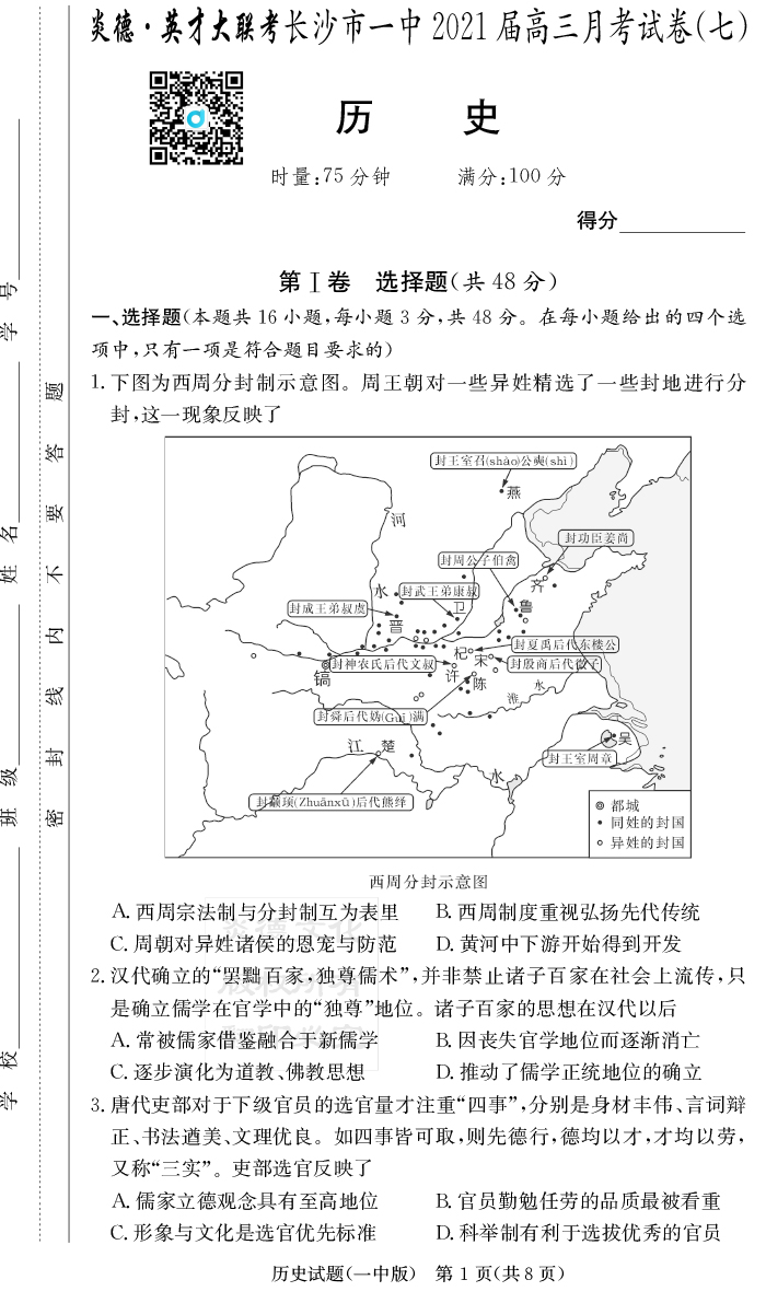 2026年高中寒假作業自主學習作業本·高一年級·歷史