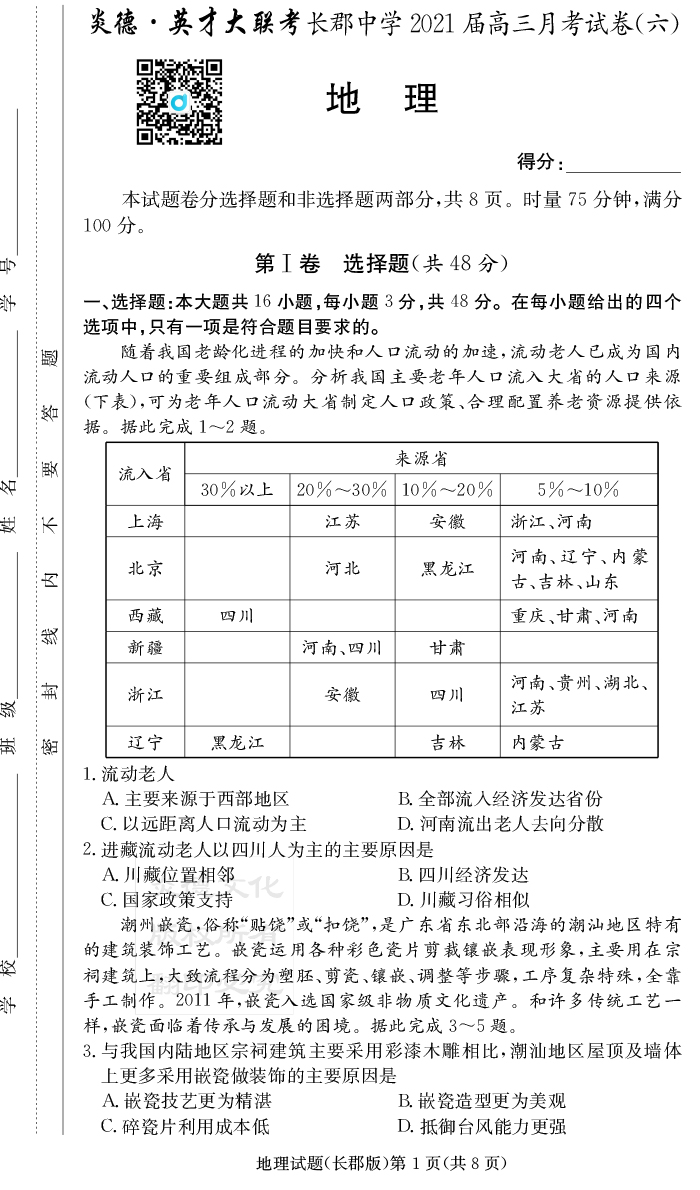 | 資源類別: | 名校月考 | |