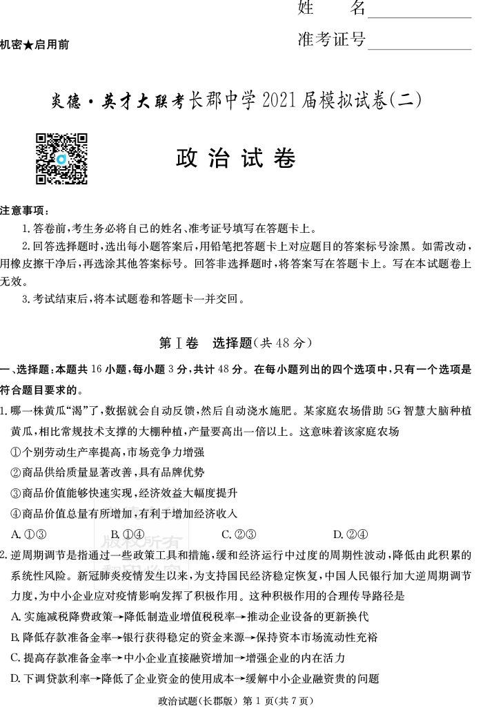 上一篇:【語文】炎德英才大聯考2021屆長郡中學高三10次月考(模擬二)