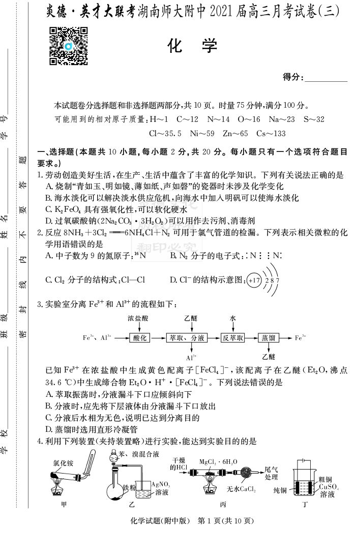 2026名師導學·高考總復習·小題量基礎周周考·化學