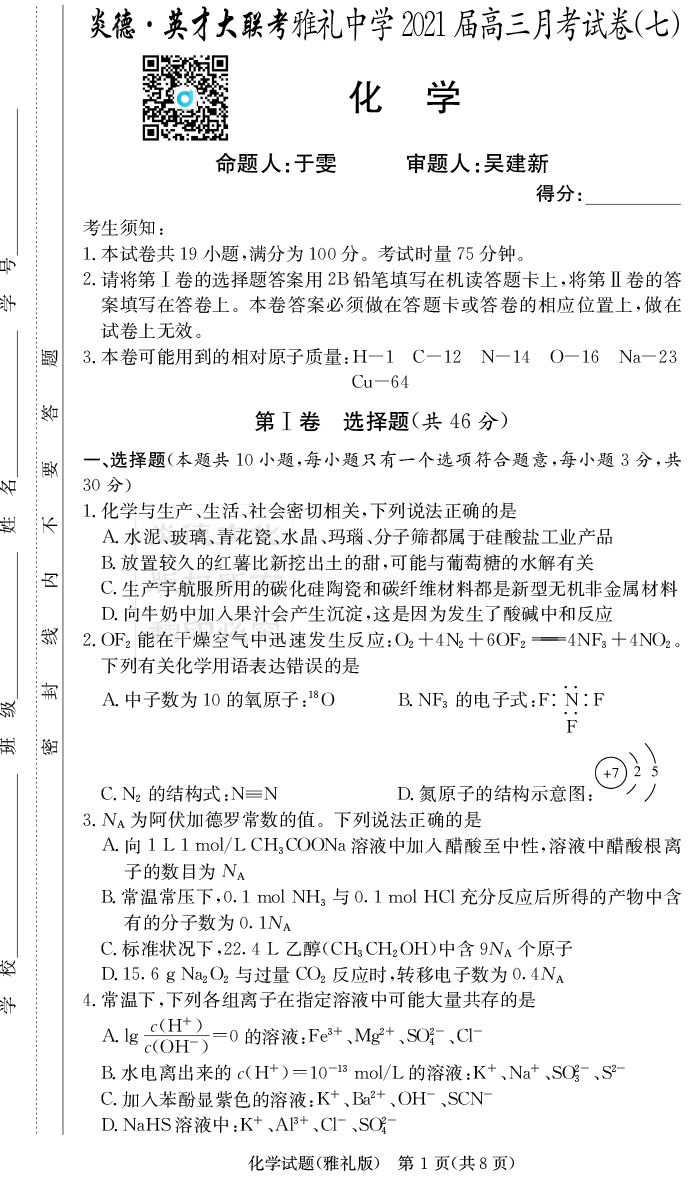 上一篇:【地理】炎德英才大聯考2021屆雅禮中學高三7次月考