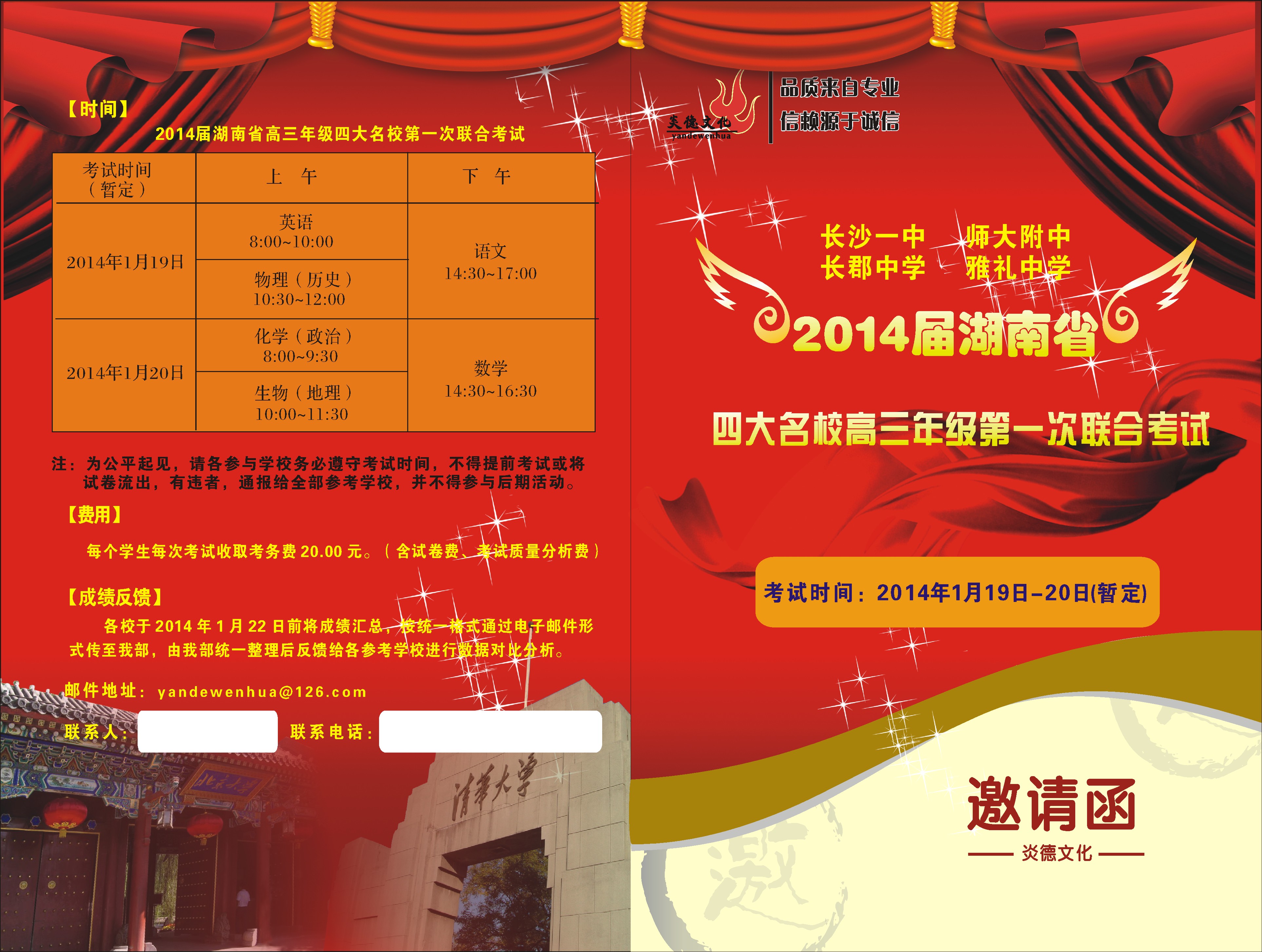 2014屆四大名校聯(lián)考邀請函