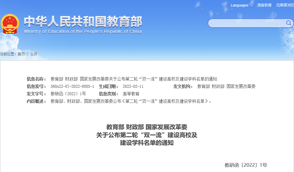 根據(jù)首輪監(jiān)測數(shù)據(jù)和成效評價,三部委依據(jù)黨中央、國務院確定的“十四五”期間國家戰(zhàn)略急需領域,按照“總體穩(wěn)定,優(yōu)化調(diào)整”的原則,經(jīng)過“雙一流”建設專家委員會研究,以需求為導向、以學科為基礎、以比選為手段,確定了新一輪建設高校及學科范圍。公布的名單共有建設高校147所。建設學科中數(shù)學、物理、化學、生物學等基礎學科布局59個、工程類學科180個、哲學社會科學學科92個。北京大學、清華大學自主建設的學科自行公布。為增強建設動力,完善約束機制,對首輪建設成效并未完全達到預期、相比同類學科在整體發(fā)展水平、可持續(xù)發(fā)展能力和成長提升程度方面相對偏后的部分學科給予警示,相關學科應加強整改,2023年接受再評價,屆時未通過的,將調(diào)出建設范圍。