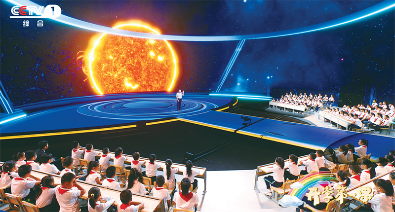2023年《開學第一課》以“強國復興有我”為主題,從傳統文化、文明探源、生態文明、鄉村振興、國防教育、科技創新等多個方面,全景展示中國式現代化的萬千氣象。圖為中國科學院高能物理研究所研究員、“拉索”(LHAASO)首席科學家曹臻在向同學們介紹世界上海拔最高、規模最大的宇宙射線觀測裝置“拉索”的前世今生。(教育部供圖)