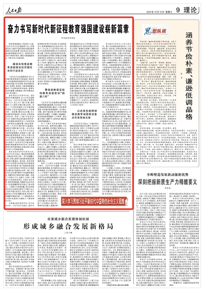 教育是強國建設(shè)、民族復興之基。習近平總書記在全國教育大會上的重要講話,對新時代新征程加快建設(shè)教育強國作出系統(tǒng)部署,向全黨全社會發(fā)出建設(shè)教育強國的動員令。教育系統(tǒng)將堅定不移抓好落實,勇?lián)d教強教新使命,不斷開創(chuàng)工作新局面。