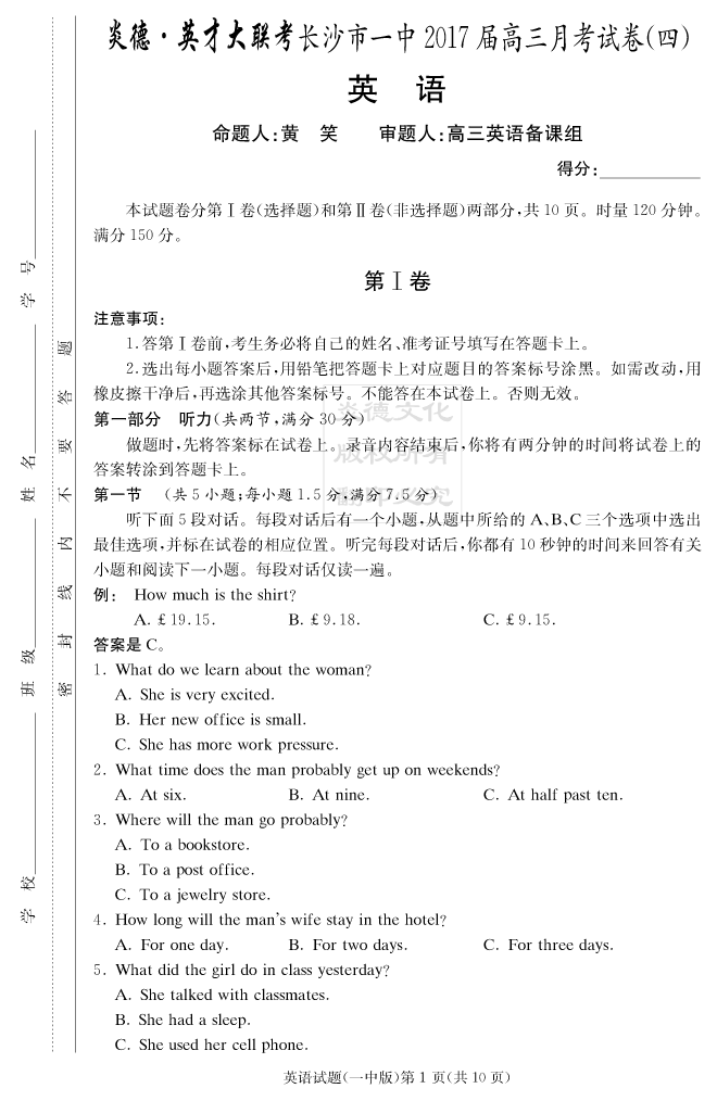 上一篇:【物理】炎德英才大聯考2017長沙一中高三4次月考